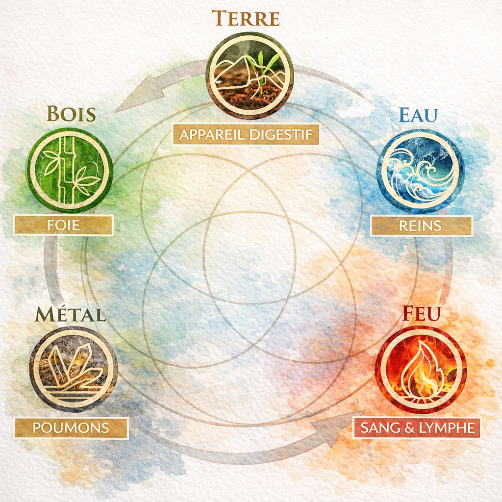 Le corps dispose de filtres précieux et profondément intelligents pour transformer et éliminer ces charges: le Foie (élément Bois), qui assure la libre circulation du Qi, le système lymphatique, gardien du drainage et du mouvement des fluides, et les Reins (élément Eau), réservoir de l’énergie vitale et de la mémoire profonde du corps. Lorsque ces systèmes sont surchargés, l’énergie ralentit, la fatigue s’installe et le corps nous invite doucement à l’écouter davantage.